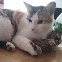 Je suis développeur web qui travaille à la maison, donc je suis tout le temps avec ma petite fille aux pattes. Je l'adopte à la rue maigre et couvert aux puces et maintenant elle est la chatte plus aimé au monde