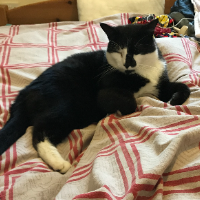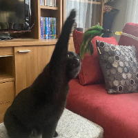 Sur toute ma vie, les périodes sans chats se comptent sur les doigts d'une main (2)... Ma famille a toujours eu des chats, et dès que j'ai été en âge de m'en occuper, j'ai participé. Quand j'ai (enfin) été en capacité d'en avoir un à moi, chez moi, j'ai adopté un chaton de quelques mois... Qui est décédé au bel âge de 17 ans en 2022... À son décès, j'en ai adopté 2 nouveaux, rapidement, parce que la vie sans chat n'avait aucun intérêt à mes yeux :-) Actuellement humaine de 5 chats noirs en bonne santé, je suis aux anges. Étant à capacité maximale raisonnable dans mon appartement, j'ai décidé de distribuer des caresses aux chats autour de chez moi, dont les humains partent en vacances bien méritées, ou en déplacement professionnel (il faut bien payer les croquettes...) !